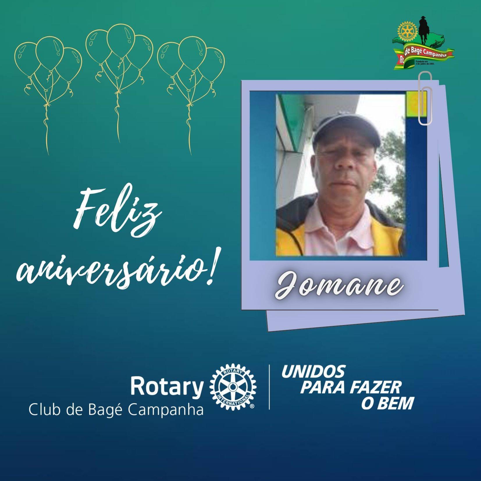 Nosso companheiro Jomane está de aniversário, o Rotary Bagé Campanha deseja muita saúde e felicidades