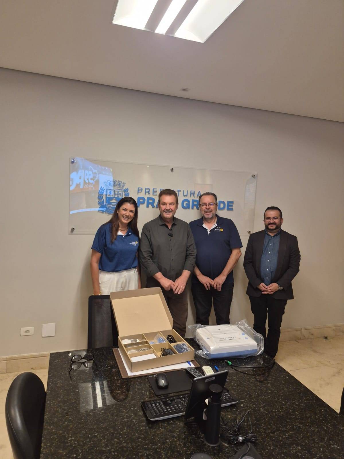 O Rotary Club de Praia Grande Forte Itaipu, através do subsídio distrital, doou, em 06/02/2026, um monitor fetal cardiotocógrafo, que será utilizado em prol da comunidade no Centro de Atenção à Saúde (CEAS) da Mulher e da Criança, no Bairro Aviação. A cerimônia contou com a presença do Prefeito Alberto Mourão e do Governador Distrital Luiz Antônio Pirola, bem como da Presidente Patrícia Viggiani Sartorelli e demais companheiros do clube.